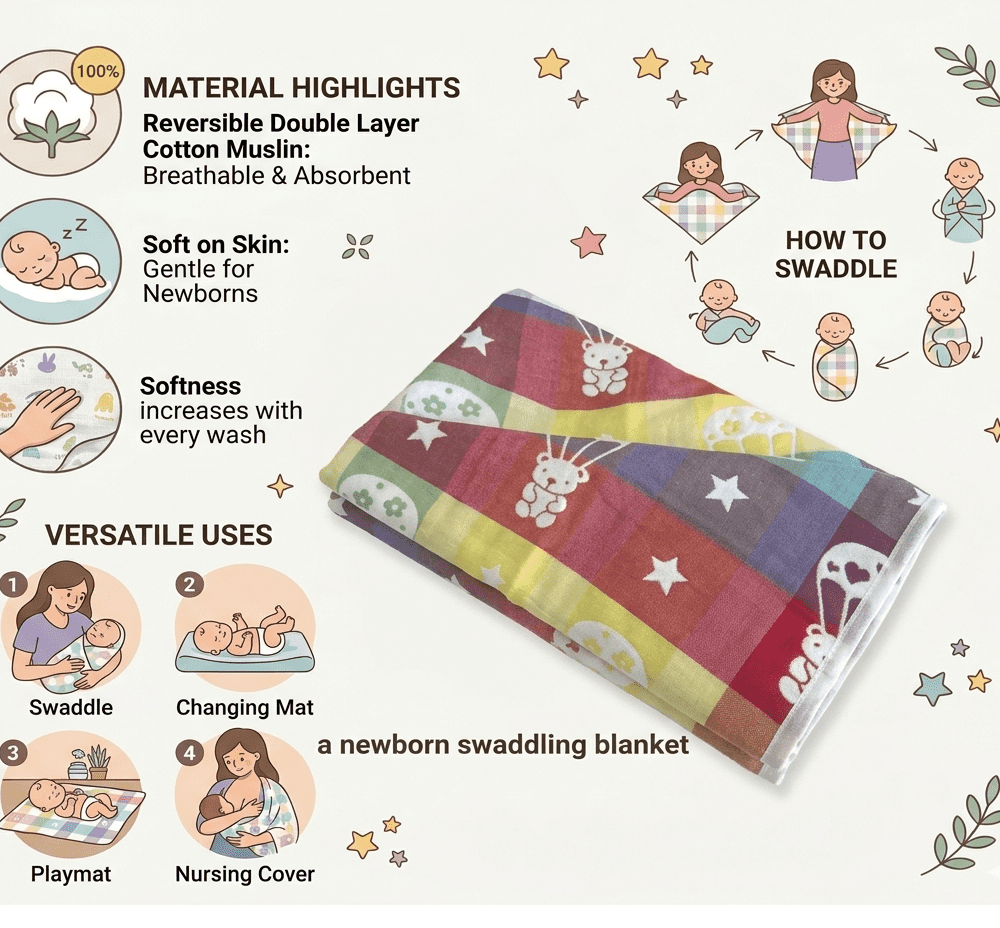 3-Pack Jacquard Cotton Blanket | Reversible Soft Swaddle & Receiving Blankets