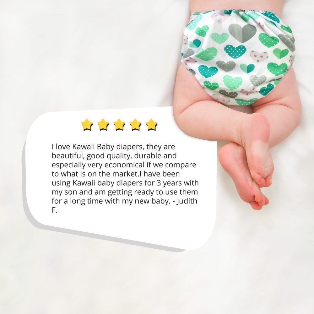 KaWaii Baby Happy Leak-Free One Size Cloth Diaper Cover can be used with inserts or with any type of prefold or with contoured or with fitted cloth diapers. Lightweight, leakfree and easy to wash and dry.