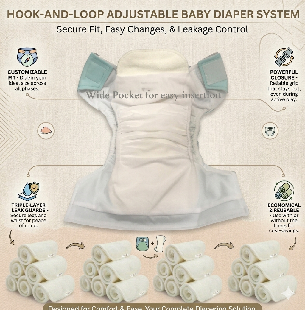 One Size Heavy Duty HD2 Pocket Cloth Diaper – 6 Diapers + 12 Super Absorbent Inserts
