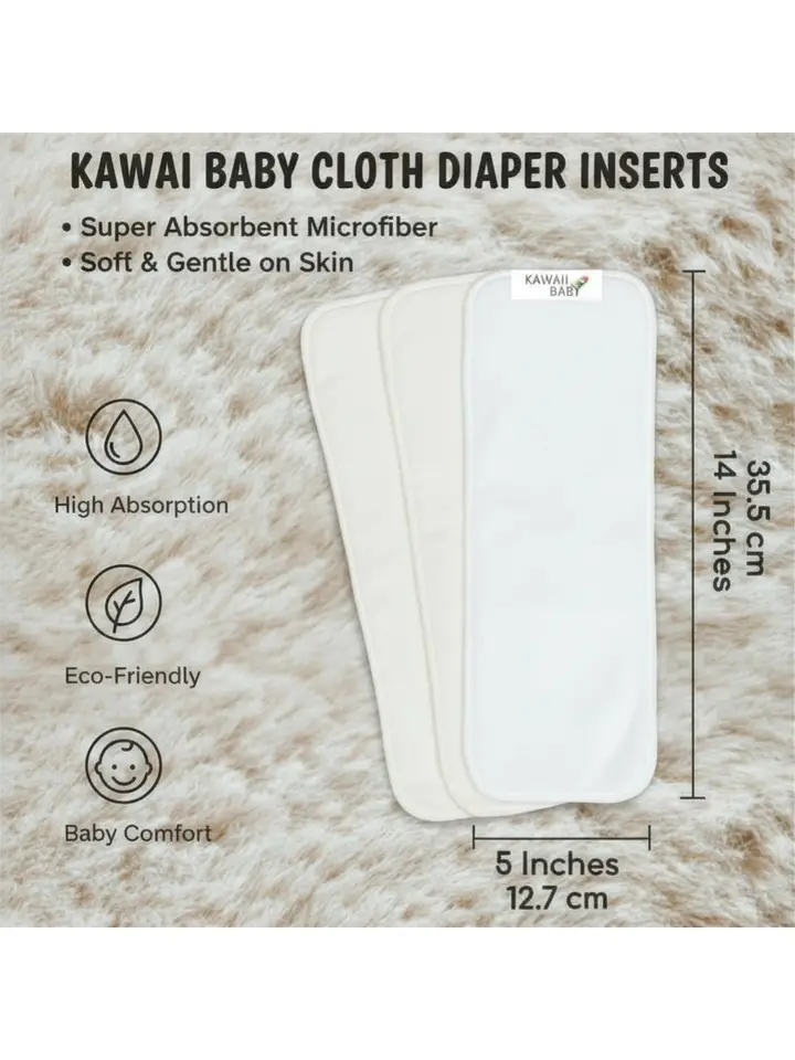 12 One Size Original Squared Pocket Cloth Diapers + 24 Diaper Inserts