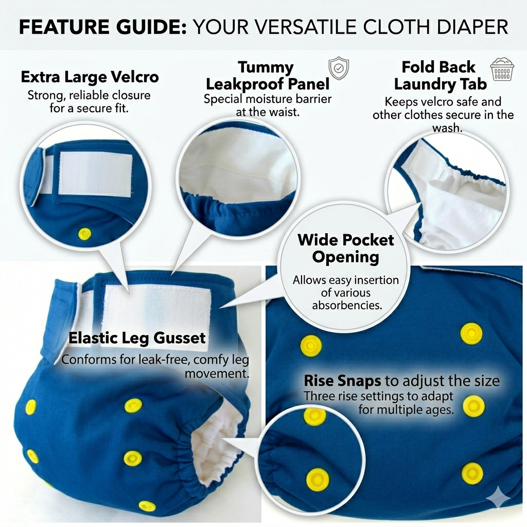 - Multi-function: The outer shell can also be used as a waterproof diaper cover over your favorite inserts, prefold or fitted diapers