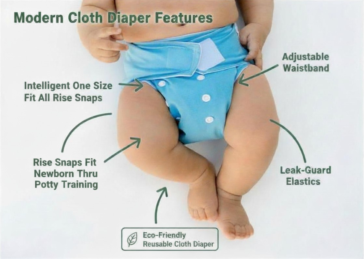 - 3D Leak Protection: Elastic waistband is adjustable and fits perfectly. Elastic ruffle prevents leaks around the baby’s legs.  A front leakproof panel that provides extra leak protection during tummy time.