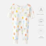 One-Piece Cotton Bodysuit with 2-Way Zipper, Fold-Over Hand Mittens & Foot Cuffs (3-12 Months)
