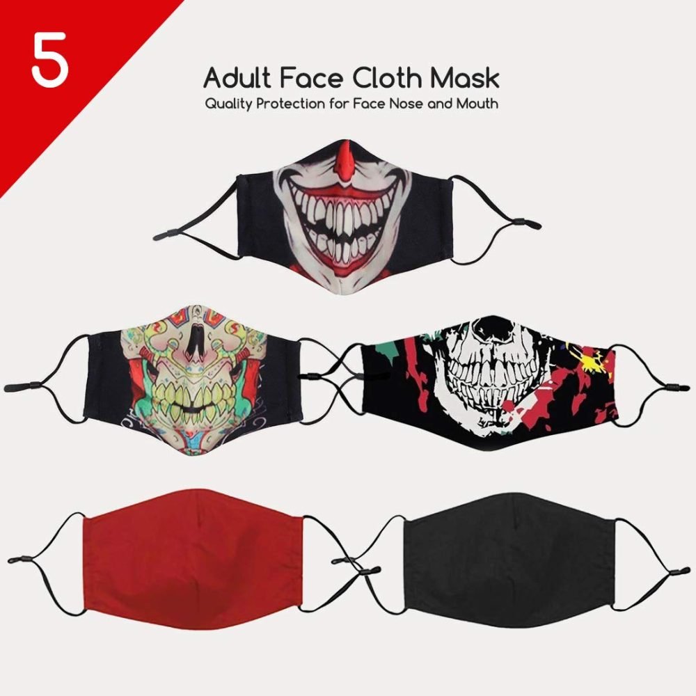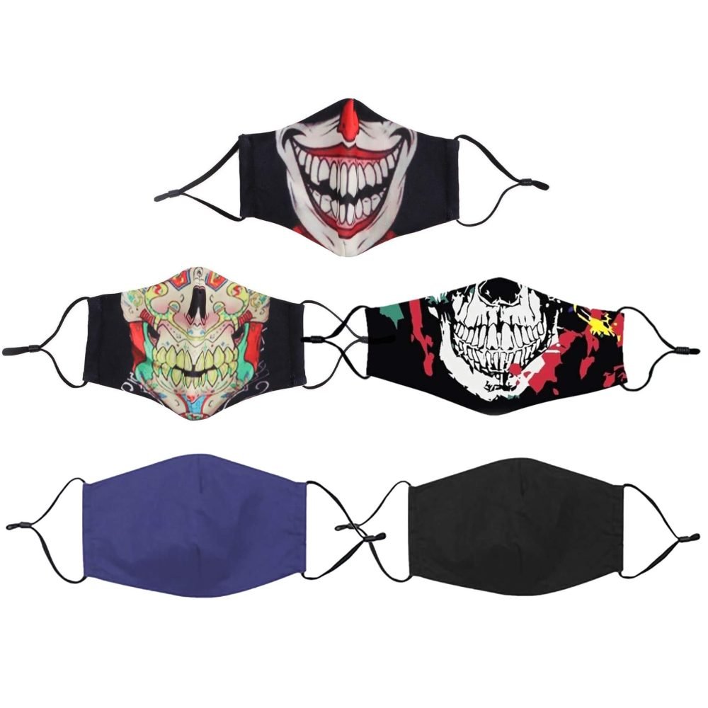 Reusable Face Cloth Mask High Quality 3D Protection Spooky Halloween Unisex 5 PCs Set